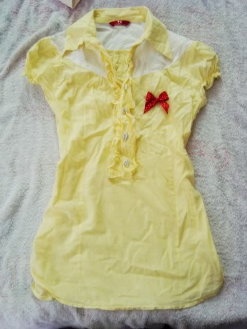 -------------------------------------------------------------------------Áo sơmi vàng,vải xô nha,mặc vào nhìn nữ tính và xinh lắm ,phọc đẹp lắm nha.Màu thật là tấm bên phải nha.Giá 50k thui