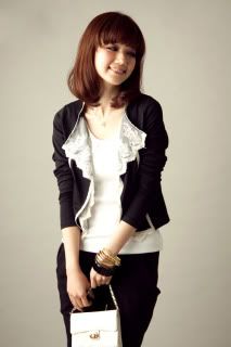 Áo khoác mép lật viền ren, form đẹp, kết hợp váy, phong cách sang trọng