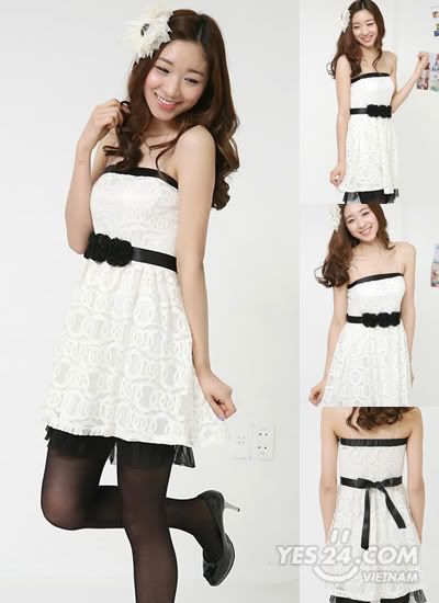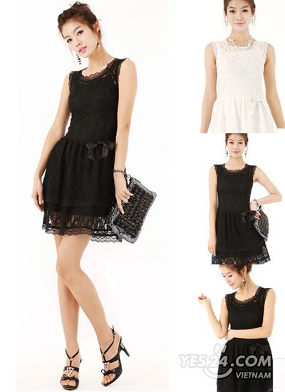 Mẫu 2 : Đầm ren hoa xòe nhẹ, thắt nơ ruy băng xinh xắn