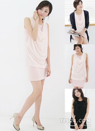 Đầm không tay , kiểu dáng cách điệu , eo gấp li nổi bật