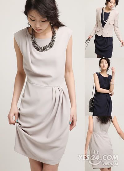 Mẫu 8: Đầm không tay , kiểu dáng cách điệu , eo gấp li nổi bật