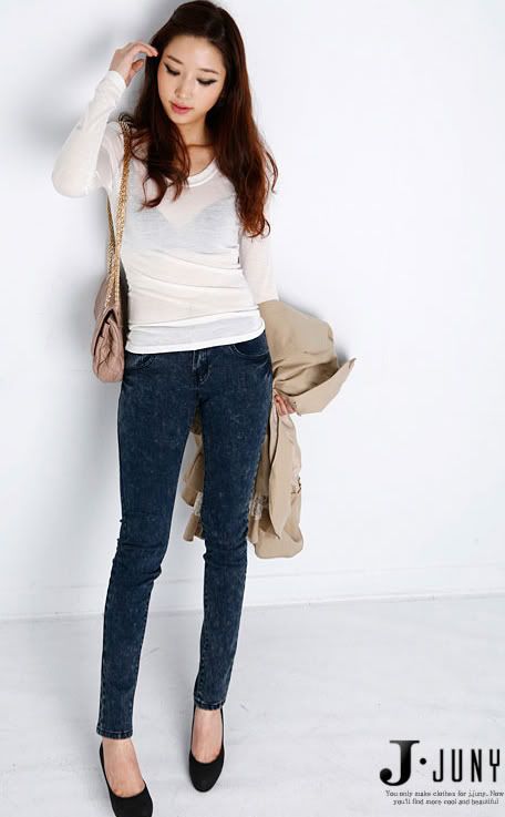 Mẫu 12 : Quần jeans dài ôm, wax nhẹ, có túi, kiểu dáng trẻ trung