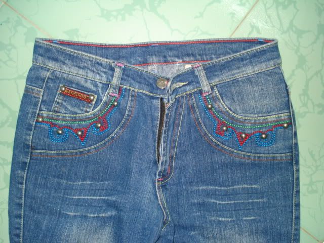 MS: D15: Quần jeans xanh, dài, hình cô gái phía sau, Bảo đảm vải rất mềm.