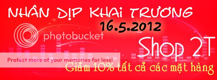 Khuyến mãi khai trương: nhân dịp khai trương Shop sẽ giảm 10% cho tất cả các mặt hàng từ ngày 16/5/2012 – 31/5/2012
