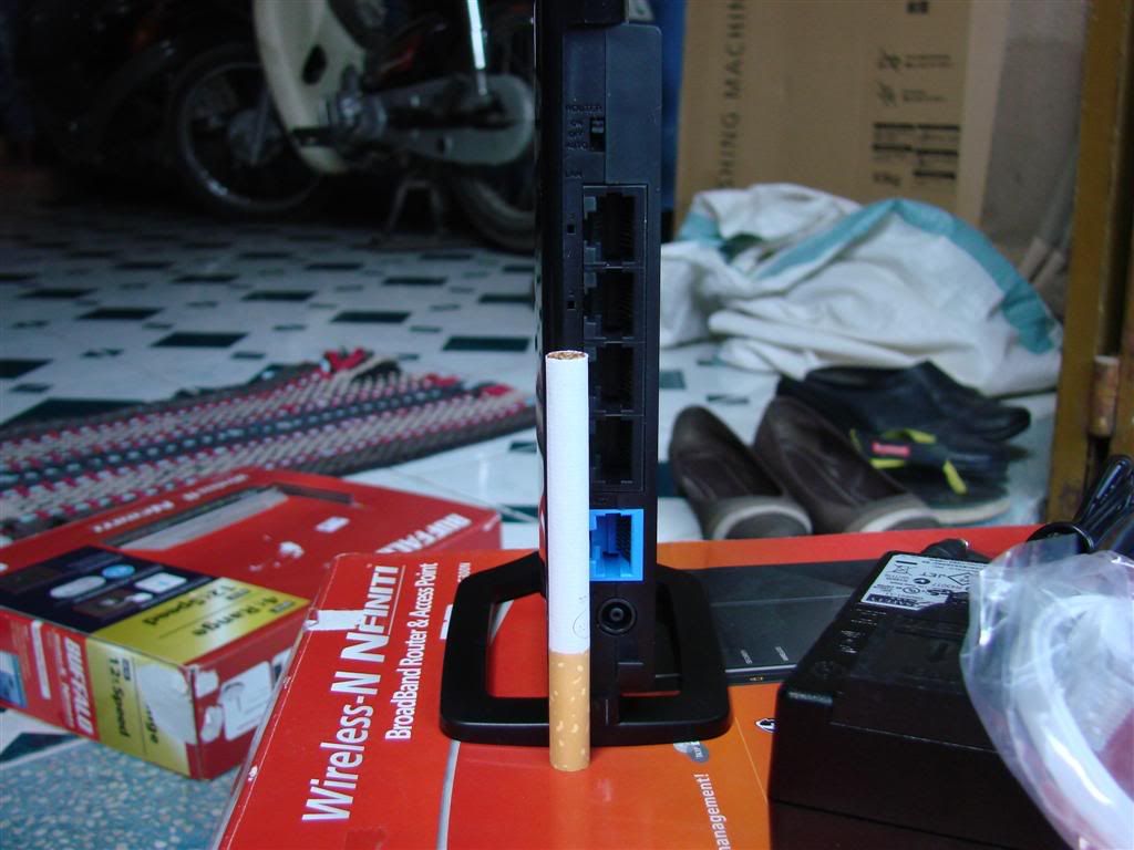 2. Tiếp theo cũng là em router phát wifi. E này cực kỳ trâu bò, dòng High Power (sức mạnh thượng đỉnh), bền bỉ, chạy 24/24 không xi nhê, vẫn mát rười rượi. E này có thể thu sóng wifi cực mạnh, có thể nói là vô đối, mang sóng nhà hàng xóm mang về nhà mình xài, đỡ tốn tiền net. Thu sóng của hàng xóm, nó sẽ phát ra wifi tiếp (có thể gọi là tiếp sóng hoặc chạy tiếp sức), đồng thời 4 cổng LAN của nó cũng có internet luôn. Em này phải nói là thu sóng wifi vô đối.