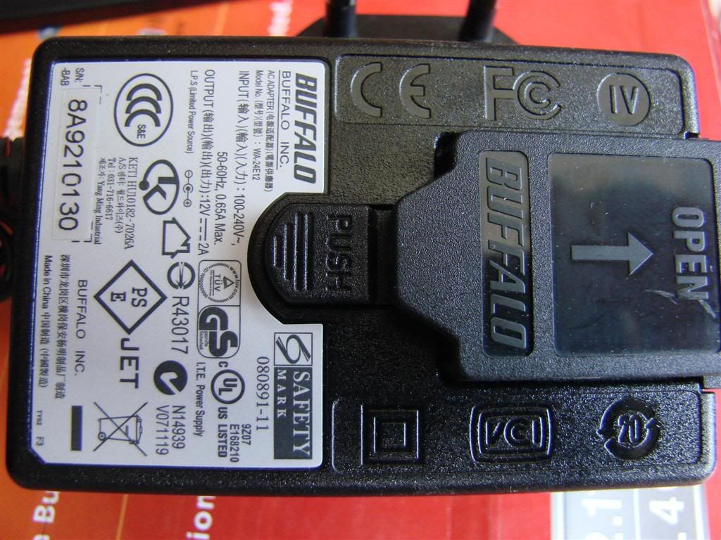Dây nguồn số 8 mà đầu cắm 3 chấu luôn mới ghê, có cả cầu chì bảo vệ bên trong. Adapter điện tử đặc trưng của Buffalo