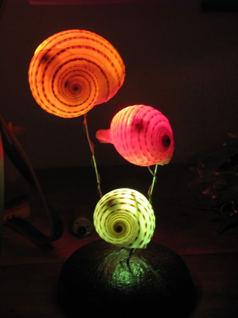 Bán đèn trang trí từ vỏ ốc và sọ dừa.