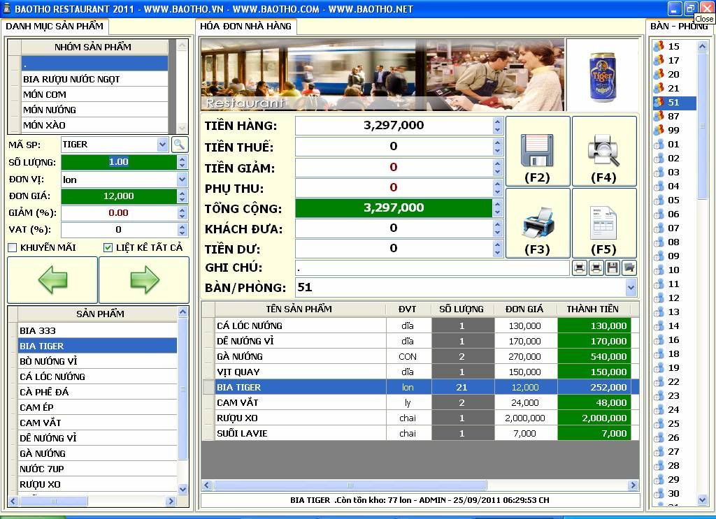 TÍNH NĂNG PHẦN MỀM RESTAURANT 2011